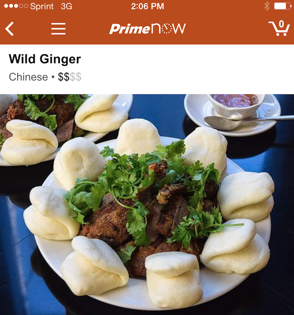 At launch, Prime Now is working with dozens of local restaurants on a rev-share basis, including Cactus, Wild Ginger, Skillet, Marination Station, Re:public, Café Yumm, Ten Mercer, Mamnoon and many more. But while there are no larger chains working with the company today, Amazon says that’s still an option. However, the company did indicate that it has a “high bar” for which restaurants it’s choosing to offer through its Prime Now service, which hints that it may be trying to compete on restaurant quality over breadth.