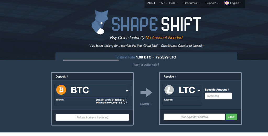 Do you need Clams? Nucoin? ShapeShift.io is here to help. This oddly simple system is a universal and anonymous cryptocurrency converter created by one of the pioneers in bitcoin, Erik Voorhees. How does it work? You request a certain cryptocurrency – Litecoin, for example – and give the service a deposit address. Then you simply deposit another currency – Bitcoin, for example – into a deposit wallet. The system converts the currency automatically without having to store your personal information.