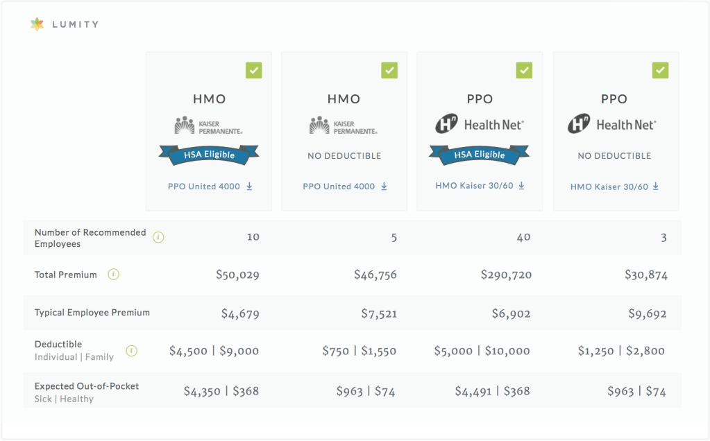 Lumity can also recommend to employees the lowest-cost option based on their conditions, which it also determines from comparing that to the historical data it gathered. Typically, selecting plans requires going through large, and often very complicated, charts and tables of what is and is not insured, along with other data points like deductibles — so any simplification here is probably pretty welcome.