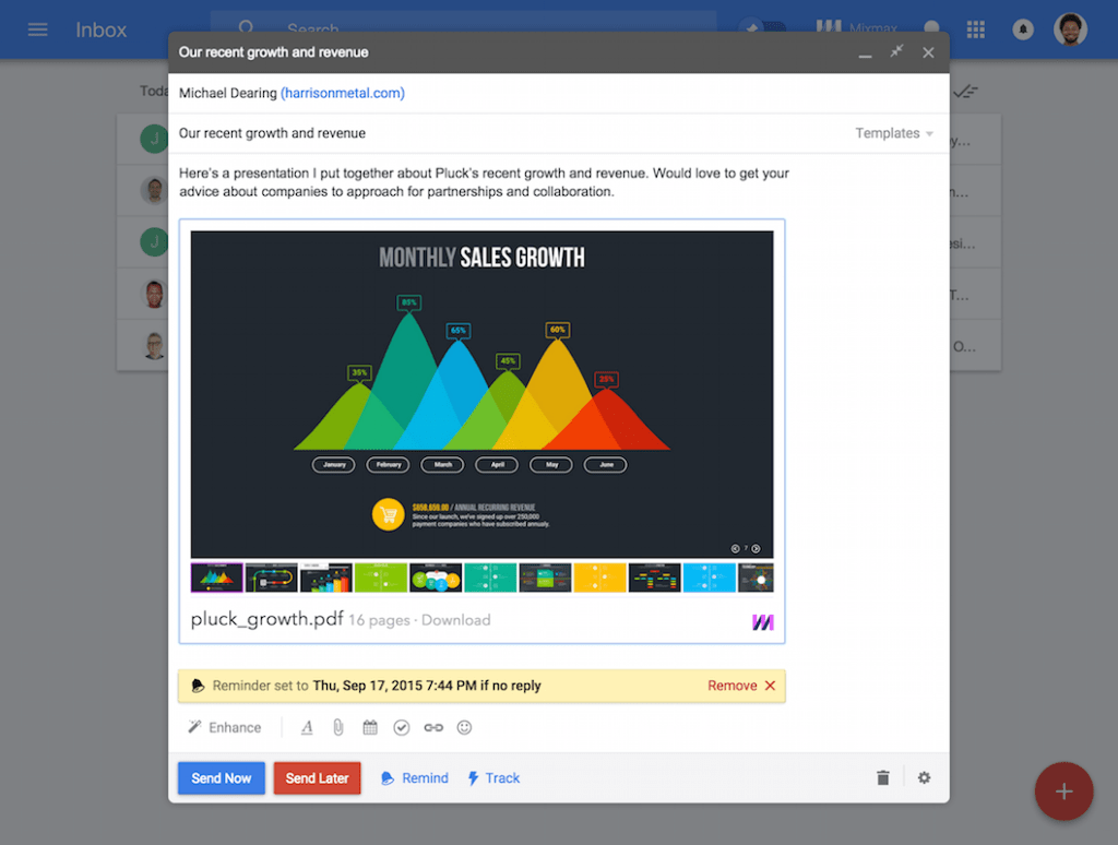 Mixmax, an e-mail startup that recently raised $1.5 million from Harrison Metal and Floodgate, integrated with Inbox to turn e-mails into much more than just a text-heavy experience. With Mixmax, you can schedule calendar availability directly from where you’re composing your e-mails from Google Inbox among other features.