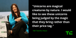 But speaking on stage at the TechCrunch Disrupt event this morning in San Francisco, Tatarko admitted that she didn’t like the term “unicorn,” and wanted to offer a different definition. Unicorns are magical creatures by nature, she explained, so she’d rather see startups dubbed “unicorns” judged by different metrics.