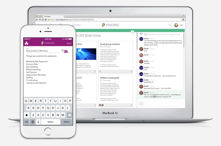 So Pingpad can be used for collaboration among both your personal and professional groups. Apparently many of the beta testers were college students, and they adapted it to different aspects of their academic and social lives.