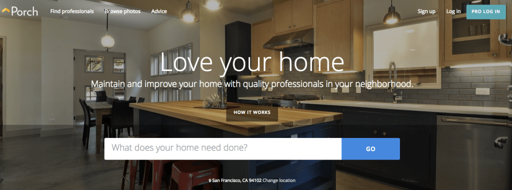 Two years ago, Porch started out as a platform that allowed you to see what kind of remodeling projects people in our neighborhood were doing to their houses and how much they paid for it. Today, the company offers a far wider range of service and now also helps you find the right people to work on your home projects. Because it now verifies those pros, it’s now able to offer a $1,000 guarantee for all the work done in your house by a Porch verified pro.