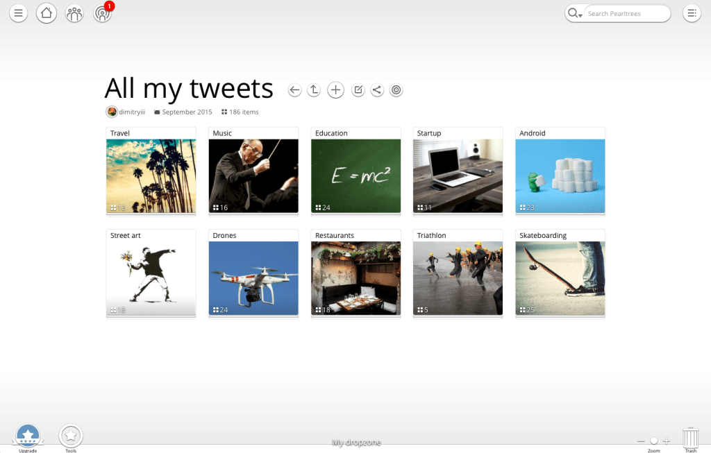 Pearltrees also pulls in your images from Twitter and Facebook, but it doesn’t classify them automatically, so that part of the service didn’t strike me as all that interesting, but there are surely quite a few users who want to keep a backup of the images they share on Twitter and Facebook on a third-party service.