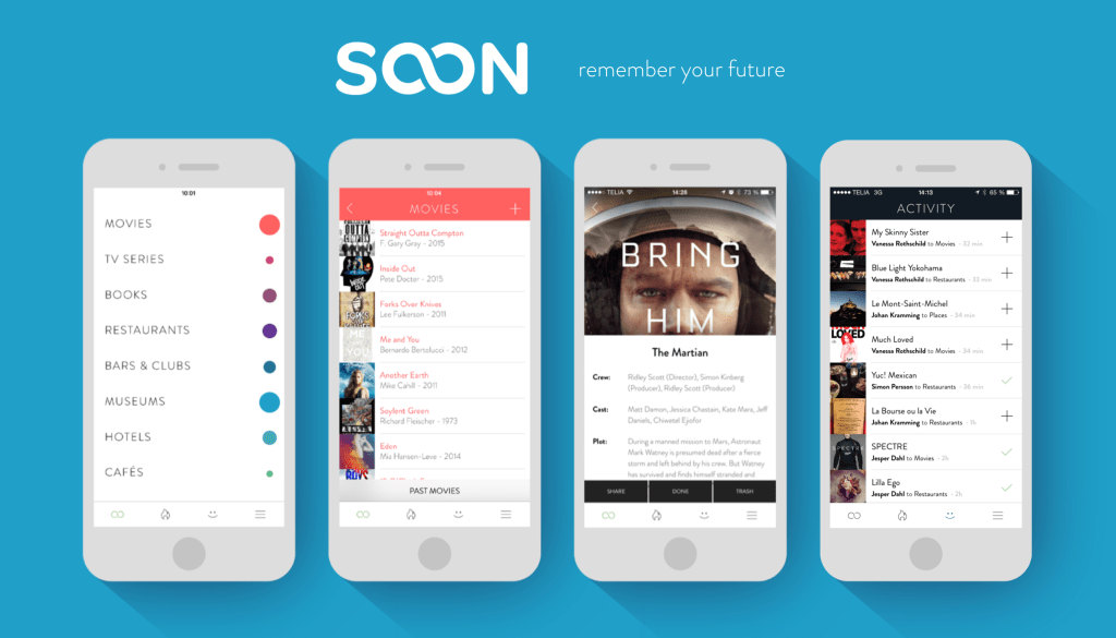 Anchér says he and his co-founder, Henrik Evrell, came up with the idea for Soon because they both felt that there isn’t a good way to track all the things you hear about on a daily basis that you want to try. “We started asking around and saw that the most common solution actually was the note app, which looked really messy,” he says.