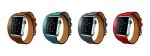 Prices start at $1,100 for the 42mm single strap option, which is available in black and brown (noir or gauvre), and a red strap (capucine) is available in the 38mm size. The iconic Hermès double strap band costs $1,250 and is available in gray, brown, red or teal. This option is only offered with the 38mm watch. For $1,500 buyers can opt for The Cuff, an extra large leather strap available for the 42mm watch.