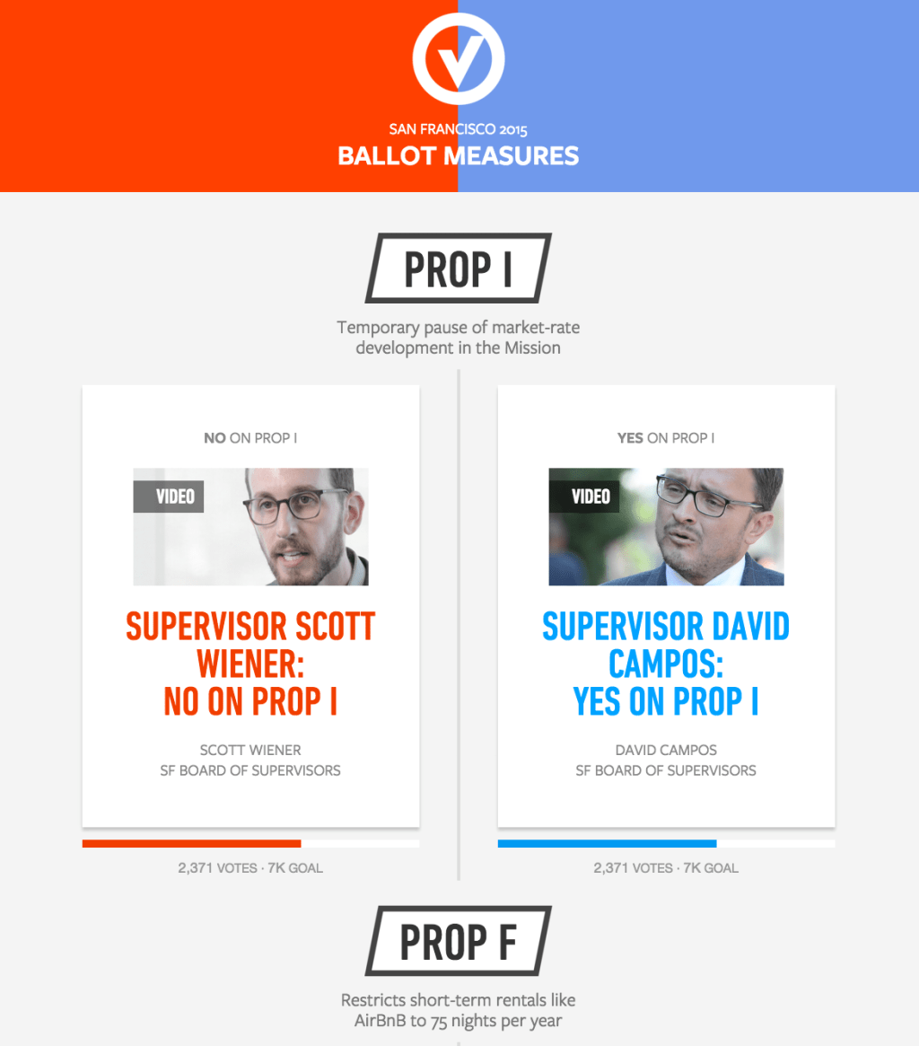 As a beta test, Goodlatte is focusing the first version of OpenVote on San Francisco’s November elections, which have five housing-related ballot initiatives. The last day to register to vote is on October 19.