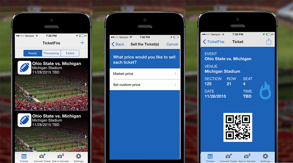 To recap, TicketFire originally allowed you to scan and digitize existing paper tickets for concerts or sporting events and then digitally transfer them to other people—even during an event. However the app could not accept the payment for the re-sale and buyers and sellers had to rely on 3rd parties to complete the transaction.