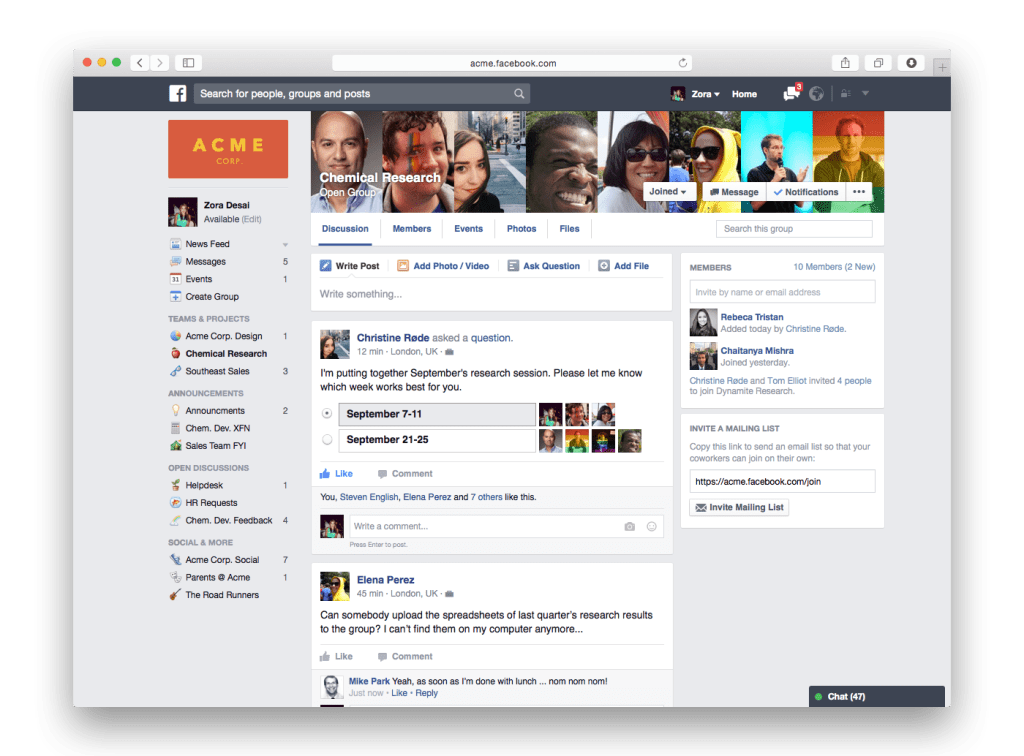 It seems like more than just a coincidence that Codorniou notes that “every time someone sends an email to more than one person or a list, we see an opportunity for Facebook at Work.” Email overuse and misuse is exactly the thing that Slack CEO and co-founder Stewart Butterfield has said his product is tackling.