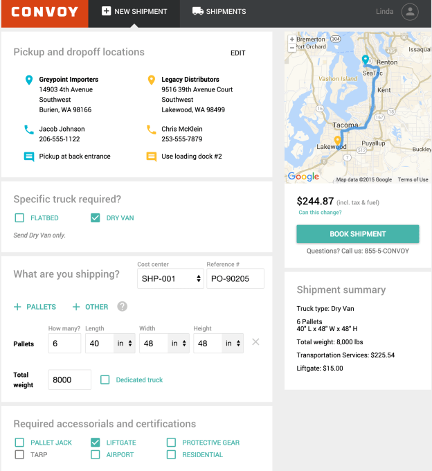 That’s where Convoy comes in, a startup that raised $2.5 million in venture financing from investors like Marc Benioff, Drew Houston and Bezos Expeditions, and is launching today. Convoy provides shippers with an online service that quickly gets them quotes for things they need to ship — like palettes of steel or other bulk shipments — based on certain variables, and connects them to companies with trucks in the area.