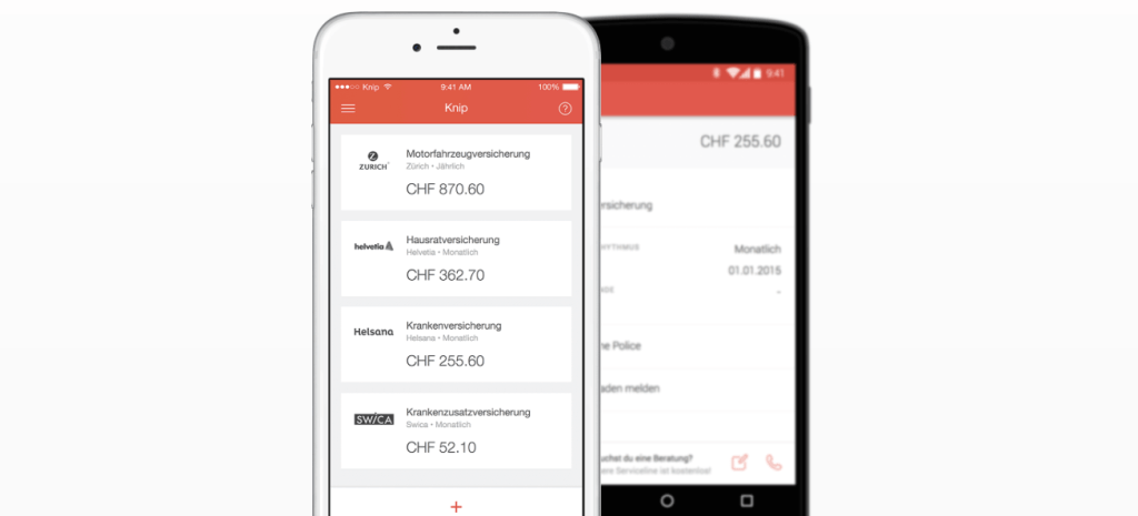 The Knip app for iOS and Android, which has seen 330,000 downloads in Germany and Switzerland, essentially moves the insurance brokerage and policy management process onto your mobile phone. This includes giving you an overview of existing insurance policies, tariffs and services, as well as automatically analysing your insurance coverage to spot any potential gaps and providing recommendations on how to improve individual insurance protection.
