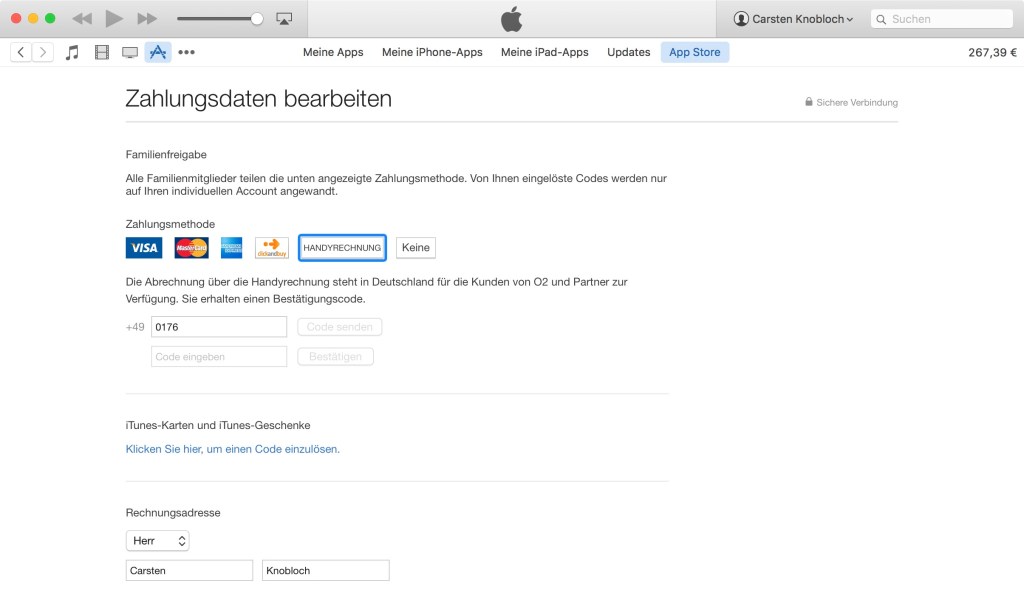 If you are an O2 user in Germany, you can now enter your phone number instead of a card number into your iTunes’ account information. Subsequent purchases from Apple Music, iTunes, the App Store and iBooks are then charged directly to your phone bill, or debited from a prepaid amount that a you have added to the phone if you are not on a contract.