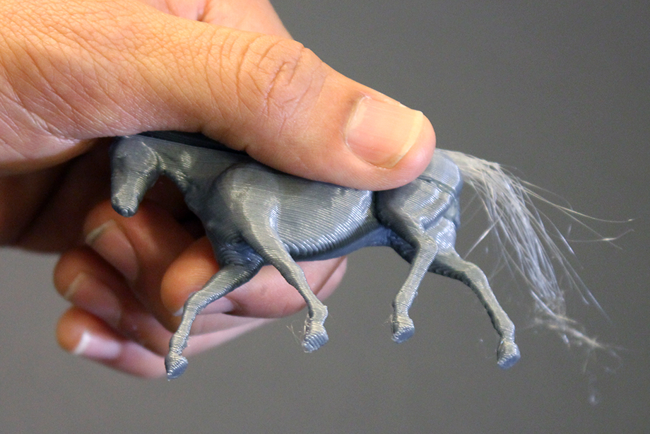 The researchers found that it was difficult to quickly pull the extruding plastic away from the object using just the hot PLA extruder. Instead they decided to move the entire plate sideways, thereby pulling the plastic away from the surface. “Though the print head can’t move up rapidly, both it and the print bed that holds the work in progress can move rapidly from side to side,” the researchers said. “By applying the molten material and then moving the print head and the bed sideways, they found they could create the hair-like strands they wanted.”
