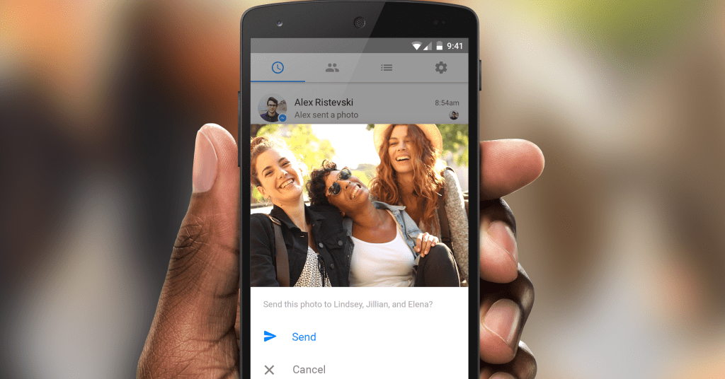 From then on, Messenger will pop up a push notification within seconds of a user taking a photo that includes their friends. They can send right from the alert, or dig in before deciding to send the photo or ignore the message. Android’s more flexible system architecture means the notifications will always happen instantly. On iOS you might have a few minutes delay if you take a photo of friends but haven’t opened Messenger recently so it’s not running in the background.