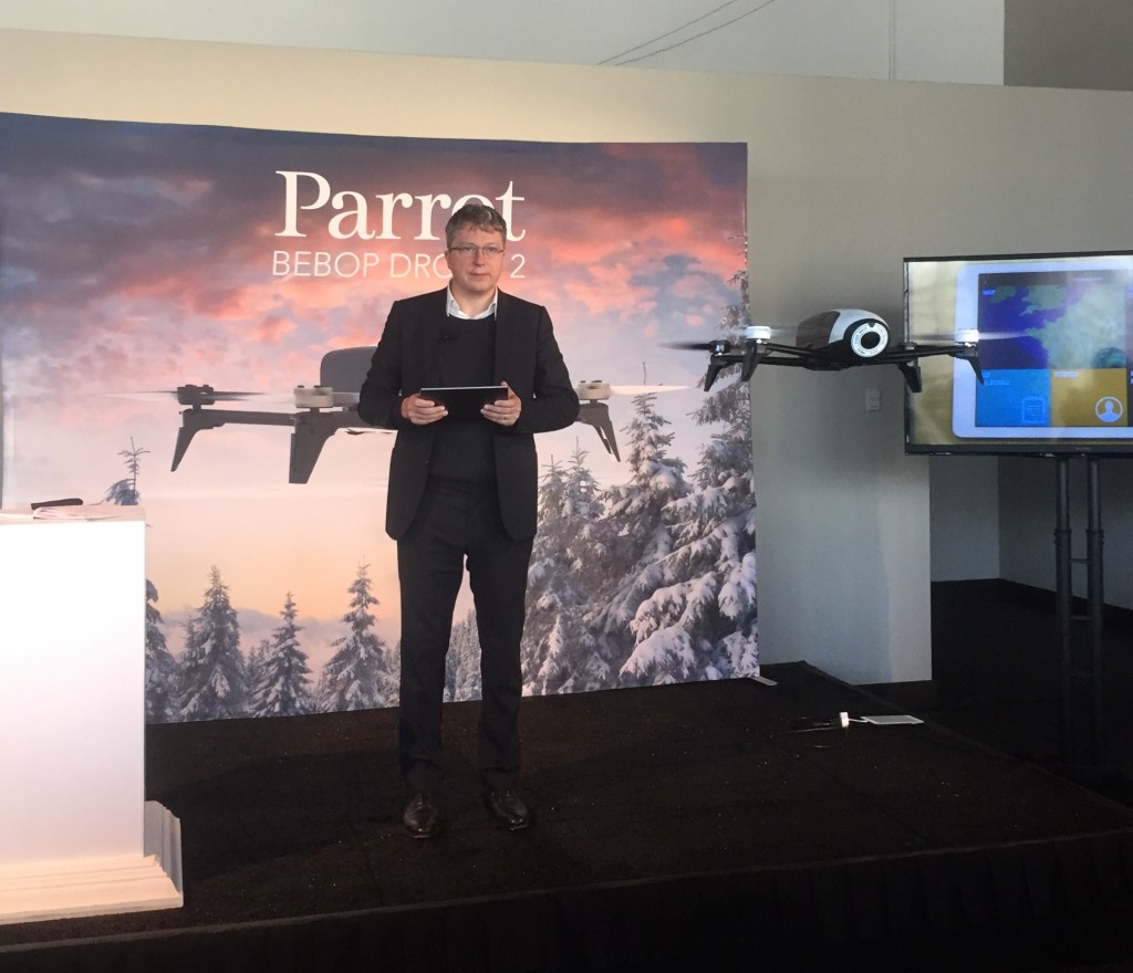 In a demo Tuesday morning, Parrot CEO Henri Seydoux said the model can reach speeds up to 36 kilometers per hour.