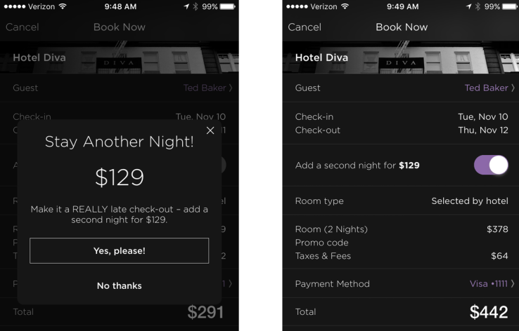 Notably, this feature is only available during checkout – meaning the company won’t prompt users to add an extra night while they are in the middle of their stay. However, when asked, HotelTonight said that offering Tonight +1 at alternative times during a guest’s stay is something they will consider in the future.