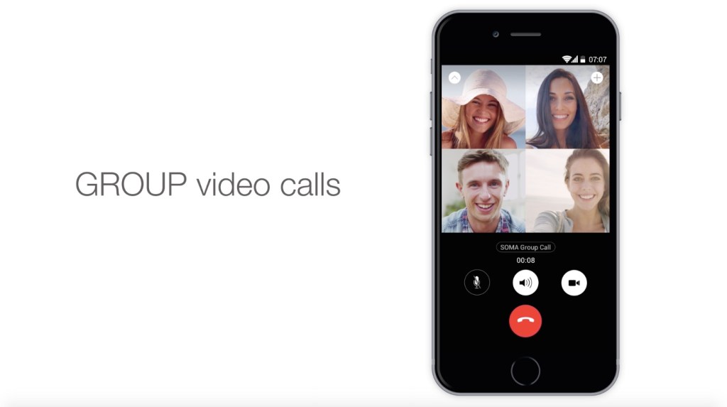 Secure messaging app SOMA announced the launch of group voice and video calling for up to four people.