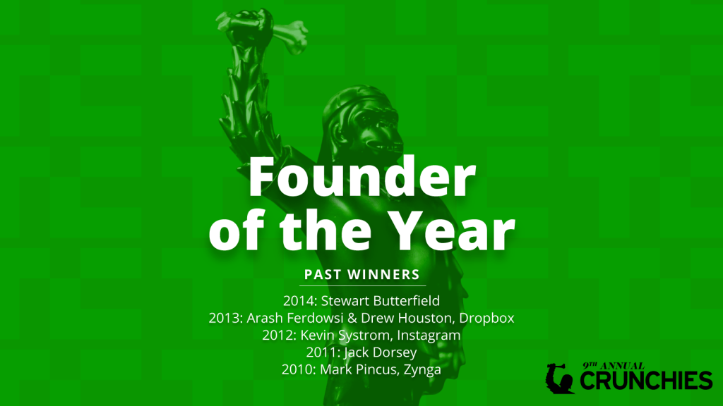 The Best Founder of 2015 will go to someone who has made a statement in leadership and execution. Past winners of this award went to Stewart Butterfield (2014), Arash Ferdowsi and Drew Houston (2013), Kevin Systrom (2012), Jack Dorsey (2011) and Mark Pincus (2010).