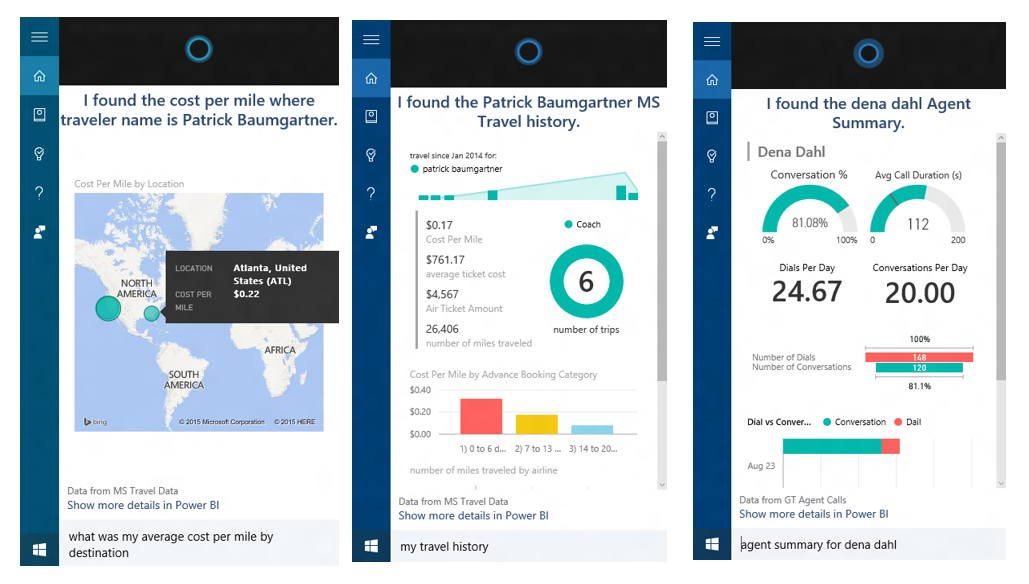 Once connected, Cortana can now answer questions from your Power BI data sets for written and spoken queries like “revenue for the last quarter” or draw you a chart for the “number of opportunities by team.”