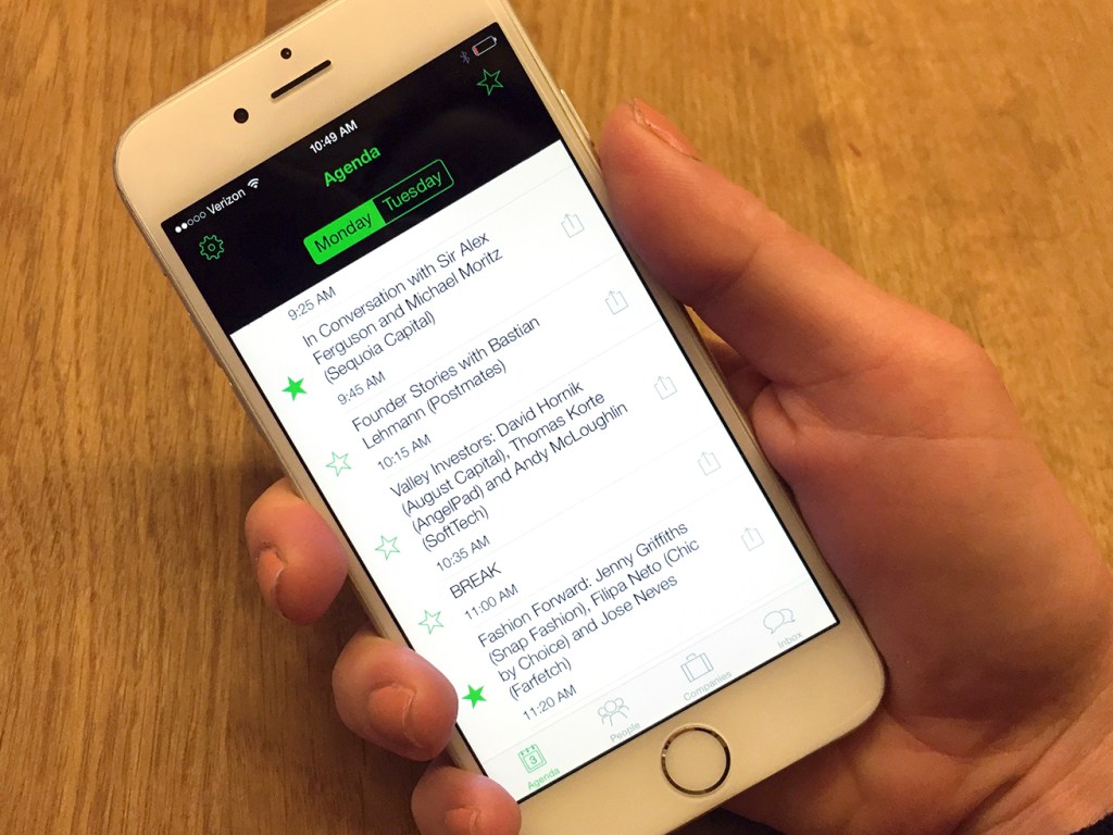 The app will help attendees find and connect with each other via in-app messaging and their social networks, as well as deliver event alerts tailored to each attendee’s role at the event (e.g. Startup Battlefield contestant, sponsor, attendee, etc). The app will also have a customizable agenda, so users can plan their days around the speakers they want to see most.