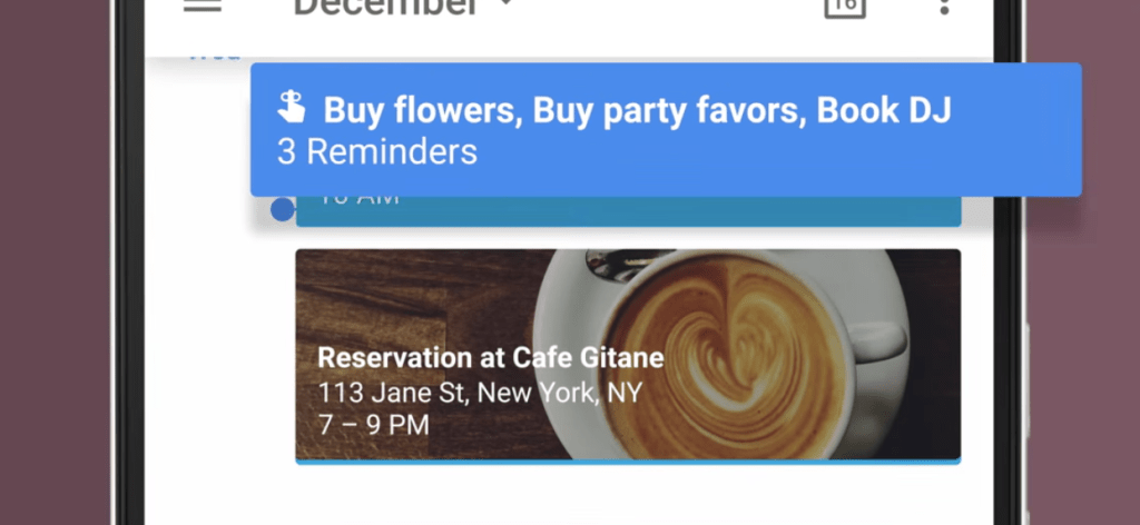 The feature surfaces all of the information you need to get the task done, like an address or phone number. You can also create a Reminders from Inbox, Keep and Google Now. So basically, you can say “Remind me to take out the trash today at 1pm” and it’ll slap up on your calendar just like that. Very Siri-like.