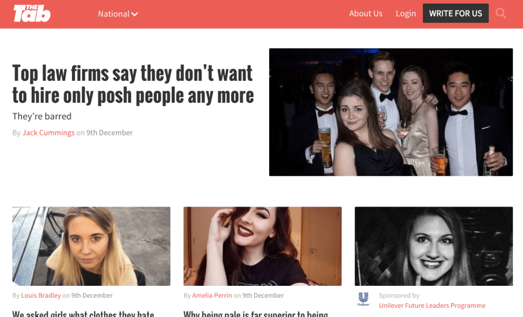 This model is an interesting one: it means that The Tab has essentially cut down one of the costlier parts of building a publication — hiring talent. And it also means that it can stay fluid enough to encourage more people to write and bring in work that is more topical from those on the ground — the very essence of citizen journalism.