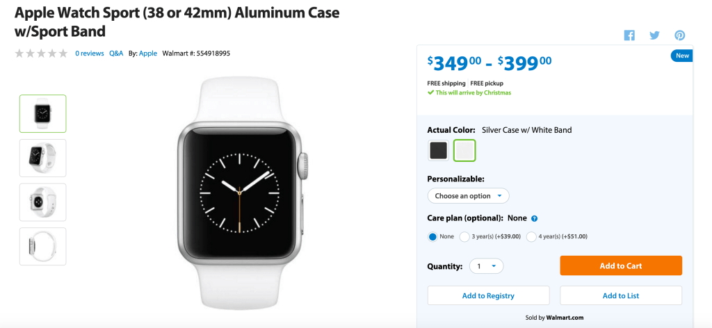 Adding Walmart as a distribution path for the high-end wearable follows similar moves Apple made earlier this year to sell the device on Target.com, and in Target’s U.S. retail stores. At the time, Target was only the second big chain after Best Buy to get the device.