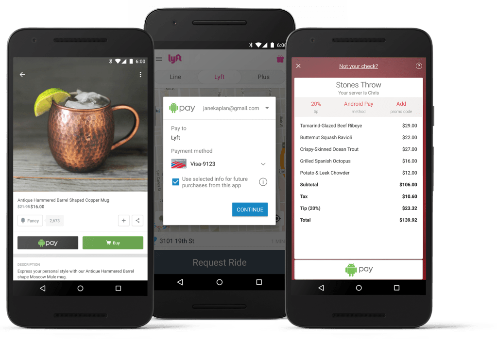 Following its launch this fall, Google’s Apple Pay rival known as Android Pay is taking another notable step this morning: it’s now available to use within mobile applications. According to the company, Android Pay will initially be available as an alternative means of checking out and paying for goods and services in a number of apps in the U.S., including shopping apps like Jet, Spring, and Wish, as well as on-demand services like Lyft, Instacart, and Doordash, plus big names like Hotel Tonight and OpenTable, and more.