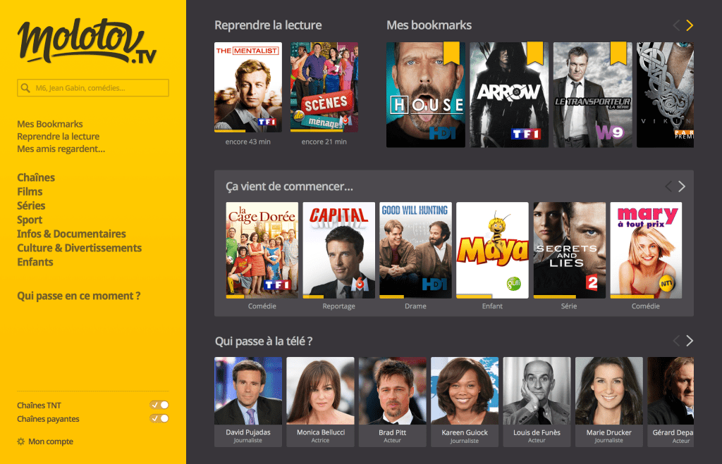 Molotov lets you watch live TV with a better interface. Instead of focusing on channels, the company focuses on content. It blends together catch-up services and live TV so that you don’t have to switch between multiple interfaces. Finally, it lets you search and bookmark content based on shows, topics, directors, etc.