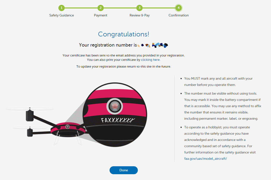 Once you get that number, you can either write it on the outside of your drone or place it inside the battery compartment (as long as that can be accessed without the use of tools).