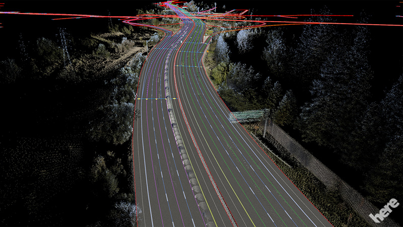 What’s interesting about HERE’s solution — HD Live Map — is that it’s cloud-based and includes both data about permanent infrastructure like how many lanes a highway has, temporal data about construction and traffic, and some analytical data about how fast actual humans typically drive on a given road.