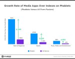 When Flurry broke down app usage by form factor, it additionally discovered that phablet users were even more engaged with apps than those on smaller smartphones. For example, growth in News & Magazine apps on phablets was 4.8x that of all devices; Sports and Music, Media & Entertainment apps were also higher at 4.6x and 4x, respectively.
