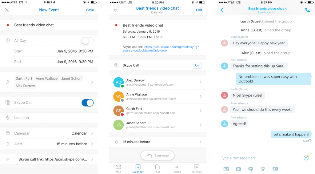 Skype’s integration with Outlook will be available on both iOS and Android. A future update will deliver the feature to Outlook Mail on Windows 10 Mobile, says Microsoft.