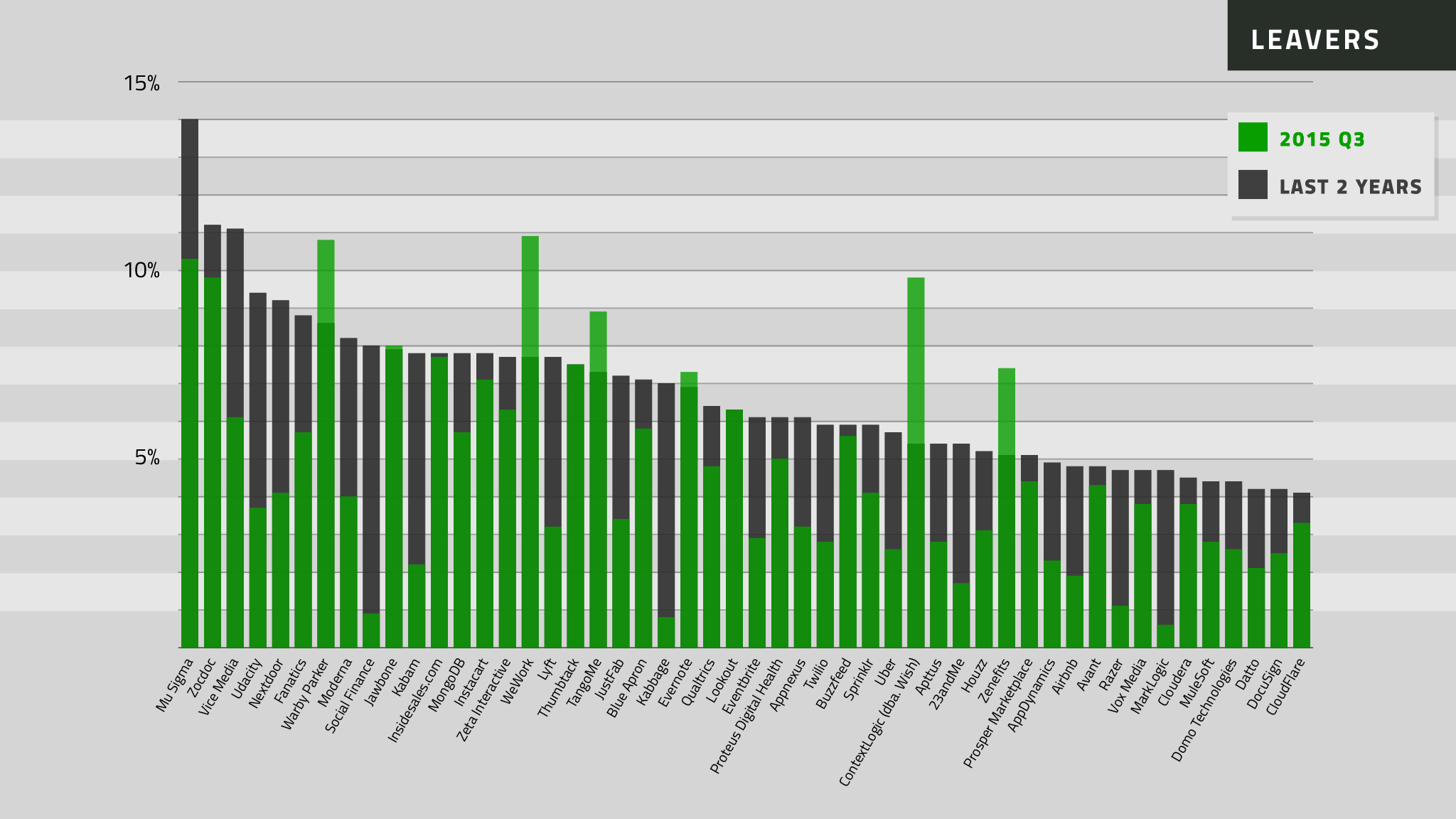 We can also tell you that while churn often does say something about the culture of an outfit, our data doesn’t distinguish between people who were laid off and who left voluntarily.