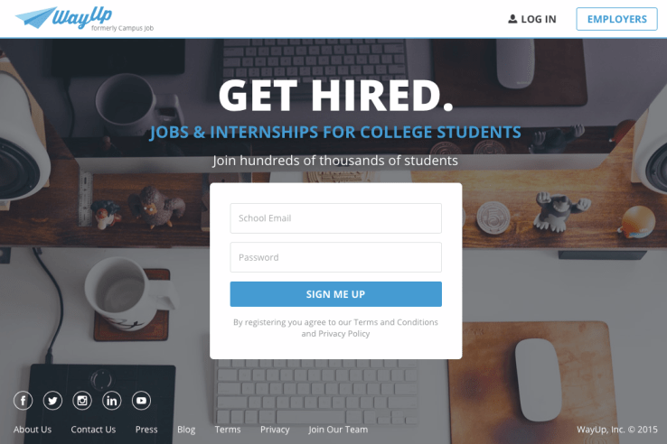 WayUp originally launched as CampusJob, offering a marketplace where employers could post job listings and students could load up profiles and hunt for jobs during the semester or summer.