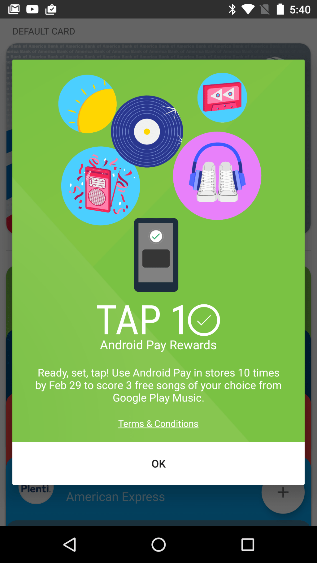 Google confirmed it’s now running a limited promotion in the U.S. dubbed “Tap 10,” which is aimed at increasing usage of its Android Pay mobile payments service, a rival to Apple Pay and others. Some Android users are being gifted rewards like a free Chromecast or free songs, movies, or subscriptions on Google Play in exchange for using Android Pay at local stores.