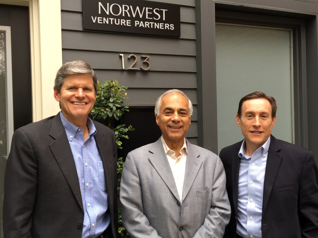Photo courtesy of Norwest. Pictured from left to right, in front of its San Francisco office: managing directors Jeff Crowe, Promod Haque, and Matt Howard.