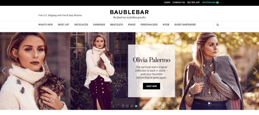 In addition to offering its jewelry for sale on the site, BaubleBar also offers its customers styling help. Shoppers can chat or email the company for help – even by sending in photos of an outfit, video chat to see the pieces live on a person, and track products on Instagram.