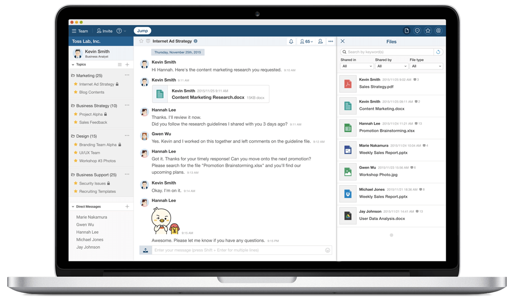Chief executive officer Daniel Chan says people tend to see JANDI as a Slack copy, but it actually originated as a clone of a group messaging tool called Naver Band. Originally created as a consumer product by one of South Korea’s largest Internet firms, Naver Band–which combined microblogging and group chat features–took off as a communication tool for teams from the same company. Toss was launched to create a similar app tailored for enterprise use.
