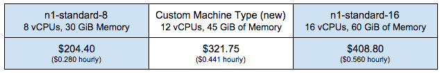 The advantage of Custom Machine Types is that you pay a flat fee per virtual CPU core ($0.03492 per core per hour in the U.S.) and GB of memory ($0.00468 per GB per hour). If, for some reason, you need three cores and 15 GB of memory, you can now choose this combination instead of stepping up to a pre-set — and more costly — machine type that would lock you into four cores and 20 GB of memory.