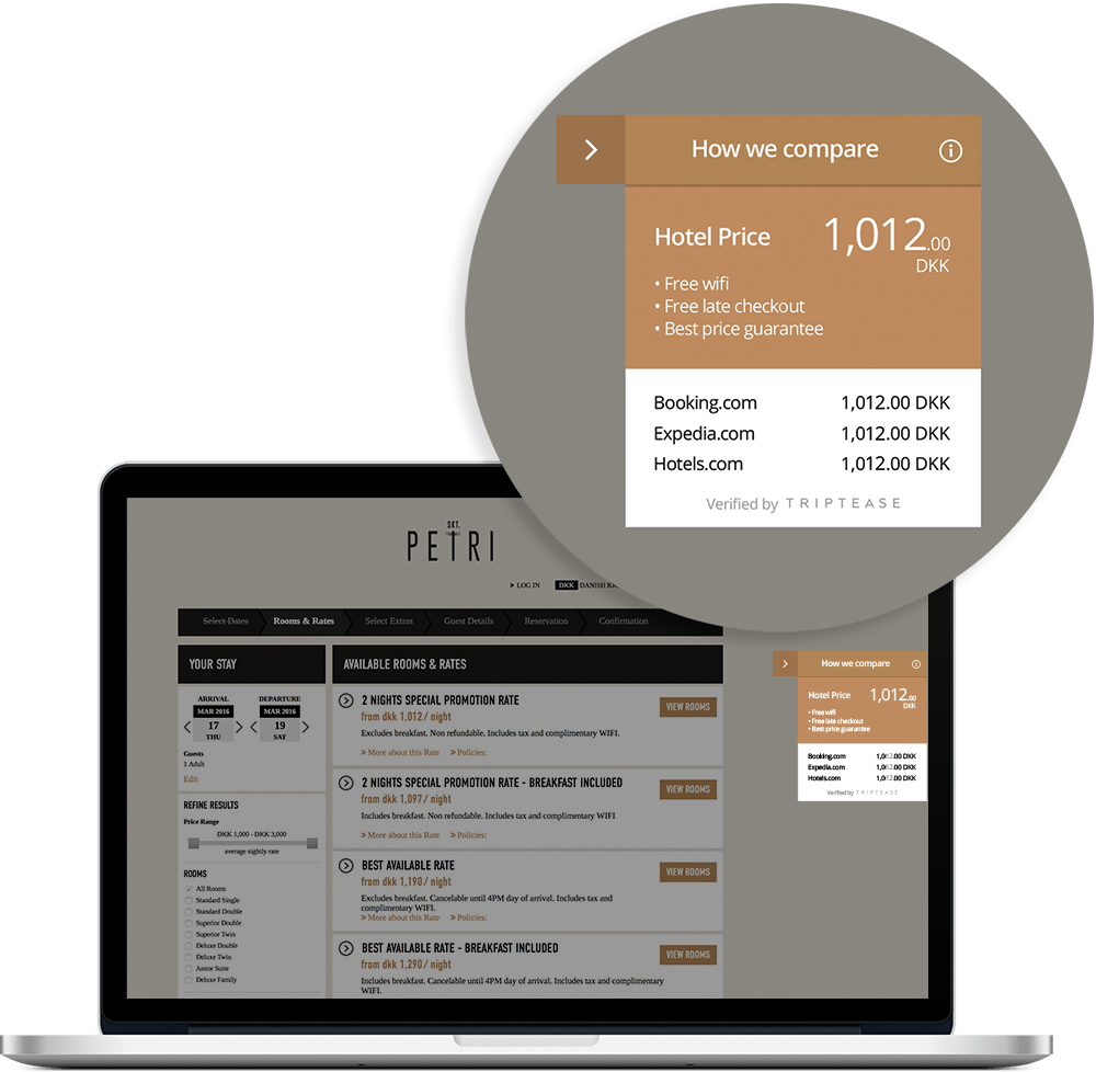 But it’s ‘Price Check’ that has seen Triptease make the headlines, no doubt helping to drive subscriptions to its SaaS. In late 2015, Booking.com waged war on hotels employing the price-checking widget, threatening legal action if its prices continued to be displayed. The claim made was that the data had been unlawfully accessed and that the information on display wasn’t always accurate.