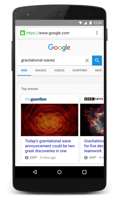 For the most part, this means that when you search for news items (AMP, in its current form, is mostly meant to accelerate news sites), Google will now often show you a carousel that highlights stories on AMP-enabled sites. This carousel is pretty much the same as the one you’ve likely already seen for searches that kick off Google’s Twitter results carousel. The difference here, though, is that when you click on one of these links, the result loads instantly (or with a very minor delay). If you are on a really slow connection, though, AMP pages will take a bit to load — this isn’t magic, after all — but even then, they will still load up significantly faster than regular mobile pages.