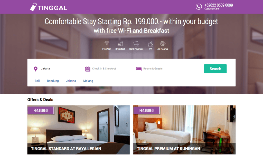 The premise for Tinggal is simple, Indonesia’s internal and overseas travel market is booming with particular demand around budget stays, but there’s a major disconnect between booking a place that looks nice in photos and then arriving there. Tinggal is taking the budget hotel model — pioneered by SoftBank-backed OYO Rooms — to add a guaranteed level of expectation for each stay. For example, all rooms booked via Tinggal include a range of expectations, both in terms of bed and room quality and additional items like free breakfast and WiFi.