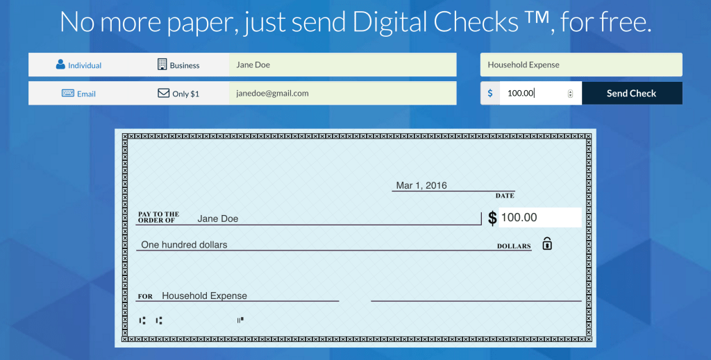 What’s remarkable is that it’s totally free for individuals to send up to 50 checks a year, and for businesses, it’s just $1 per check. That’s exceedingly cheap and easy.