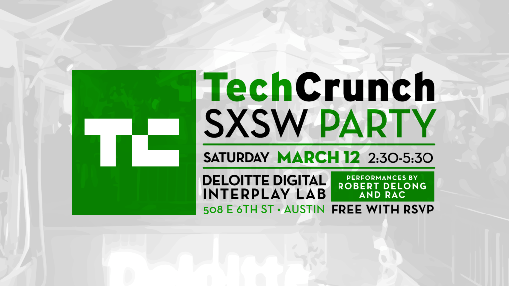 Don’t just drunkenly wander around SXSW. Meet amazing people and catch an unforgettable concert at TechCrunch’s SXSW party. Between 2:30 p.m. and 5:30 p.m. on Saturday March 12, join us at Deloitte Digital’s Interplay Lab at The Palm Door at 508 E. 6th St. Only 2 blocks from the convention center! Register here or below to attend for free.