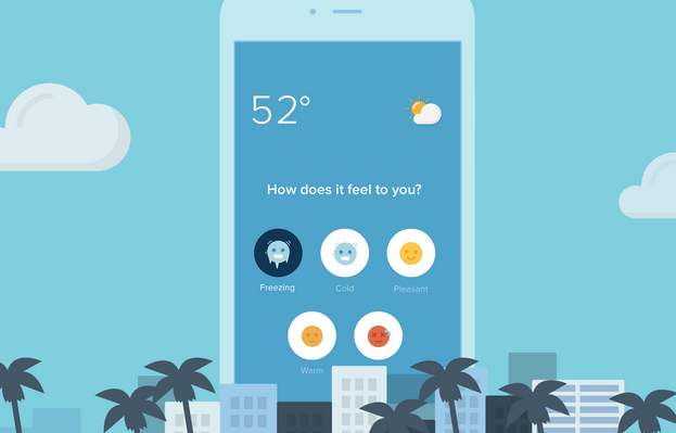 The app then uses these subjective taps — on a super simple scale of “freezing” through to “hot” — to learn each user’s temperature preferences and serve up more relevant weather reports to them.