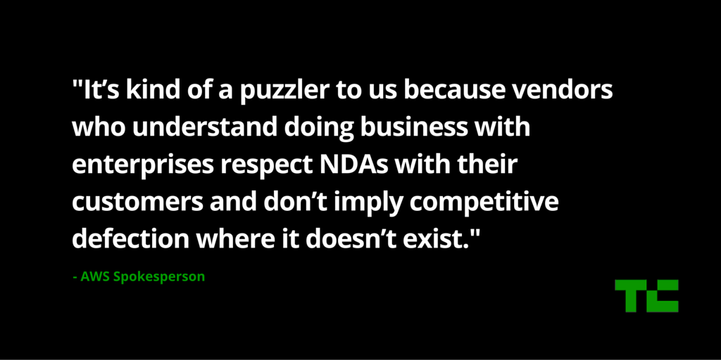 Update: Amazon has now provided us with the following statement, which seems to imply that the company believes Google leaked the information and that Apple is still an AWS customer: “It’s kind of a puzzler to us because vendors who understand doing business with enterprises respect NDAs with their customers and don’t imply competitive defection where it doesn’t exist.”