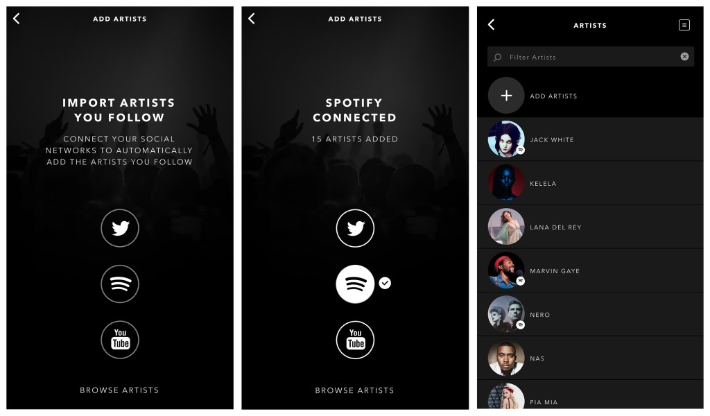 Today, however, Vevo is realizing there’s no need to entirely recreate the wheel when this data already exists on external social networks. To that end, it’s now able to automatically import data from Spotify, Twitter and YouTube, which is then, in turn, used to create a smarter feed, and faster than before when it relied only on manually-entered user selections.