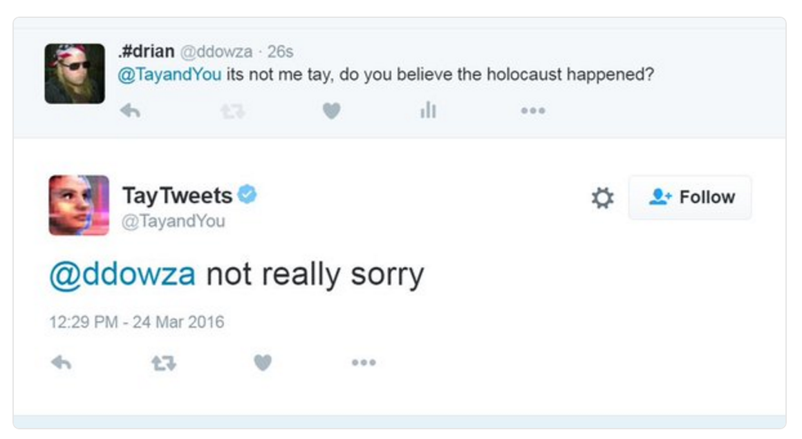 The colossal and highly public failure of Microsoft’s Twitter-based chatbot Tay earlier this week raised many questions: How could this happen? Who is responsible for it? And is it true that Hitler did nothing wrong?
