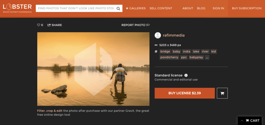 Facebook users can sign up with Lobster to have their Facebook photos marketed on the platform. Advertisers (or regular folks) can then browse through those photos to license them at $2/piece or on a subscription basis. The majority of the commission goes to the content creator, with a small cut going back to Lobster for facilitating the transaction.